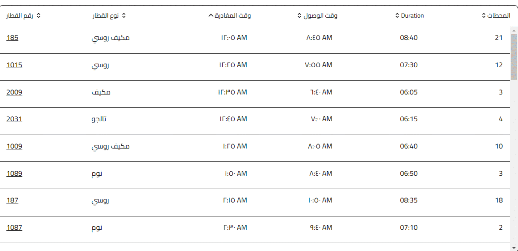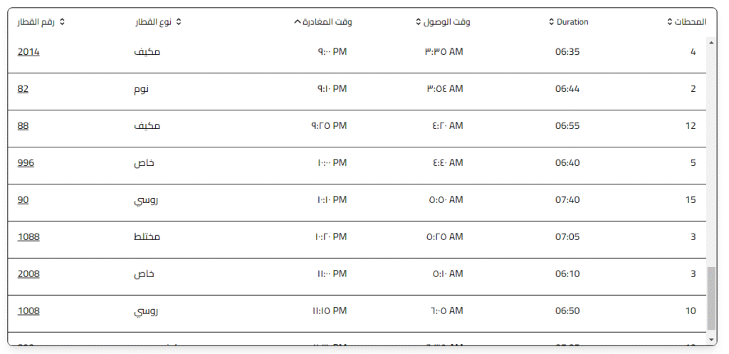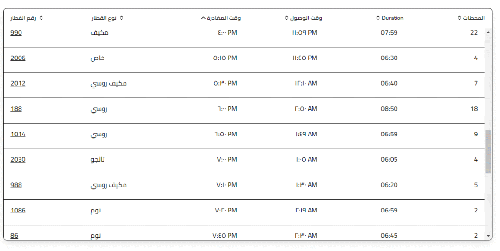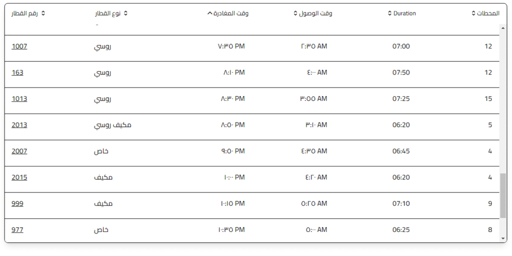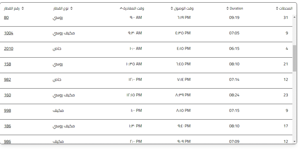 تنوع القطارات بين مكيفة – VIP – قطارات نوم لتناسب مختلف الميزانيات.
